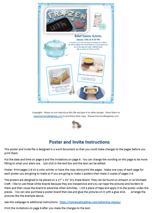 If you are an instructor of homemaking classes, you will love using this file! It will save you a lot of time by just printing the pages and constructing the poster. The file is in Word format so that you can change the text and customize the poster to fit the date and time of your class.